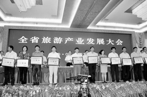 大會(huì)授予昆明市、昭通市、曲靖市、玉溪市、保山市、大理市、麗江市、西雙版納州等13個(gè)州市為“2009年度云南旅游經(jīng)濟(jì)指標(biāo)目標(biāo)責(zé)任考核一等獎(jiǎng)”,各獎(jiǎng)15萬(wàn)元。