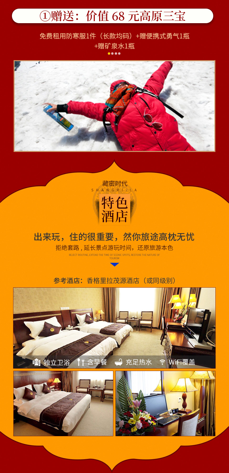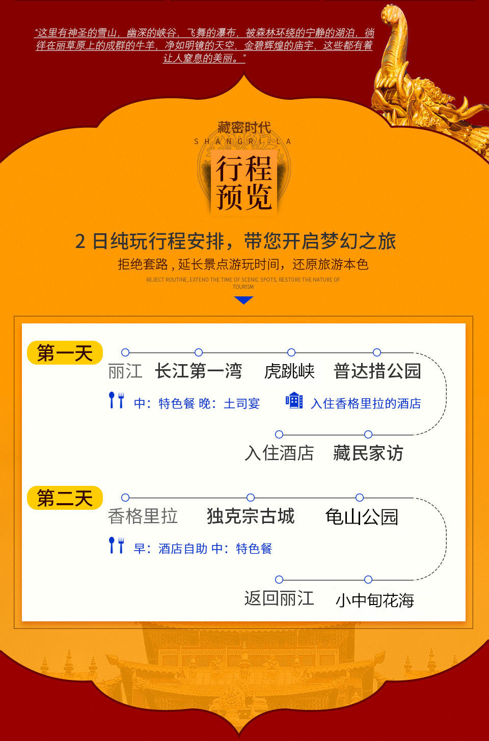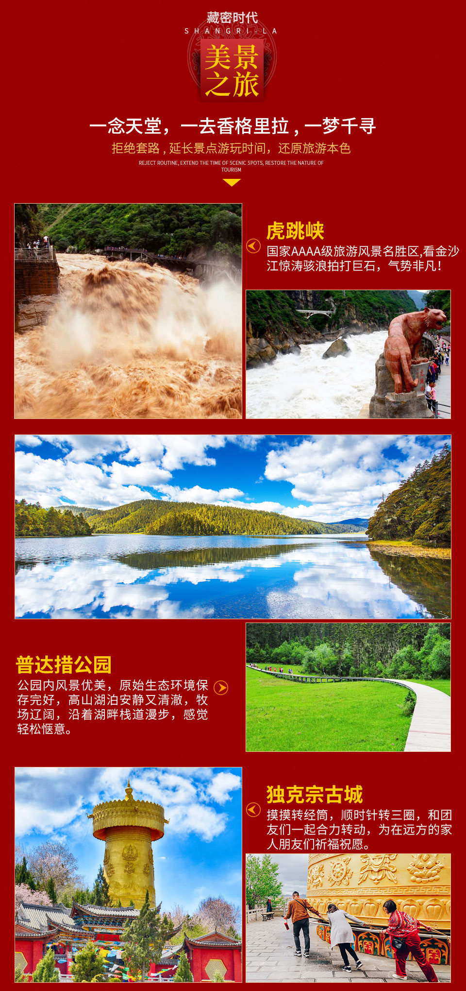 行程中所列景點首道大門票普達措國家公園,虎跳峽,獨克宗古城